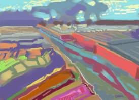 This show starts with some carefully observed landscapes and continues through landscapes painted from memory. Then there are landscapes merging with ethers and mists or becoming ideas and processes moving towards abstraction or views from other perspectives.